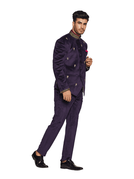 OWL EMBROIDERED VELVET BANDHGALA