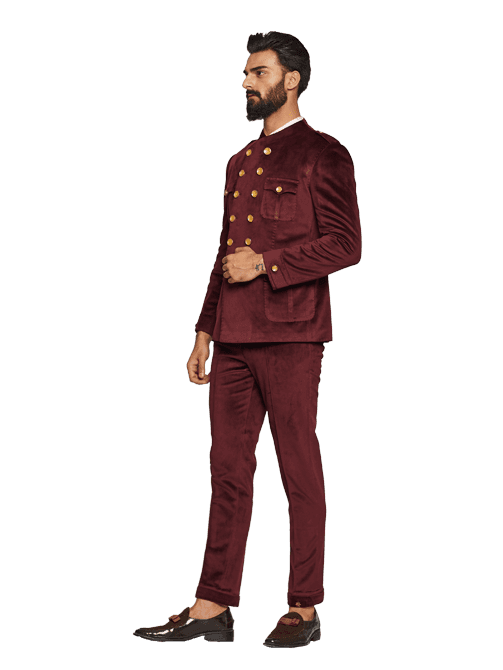 A style essential in every man's wardrobe, our collection of Maroon double breasted velvet bandhgala include everything which is the need of the Hour.