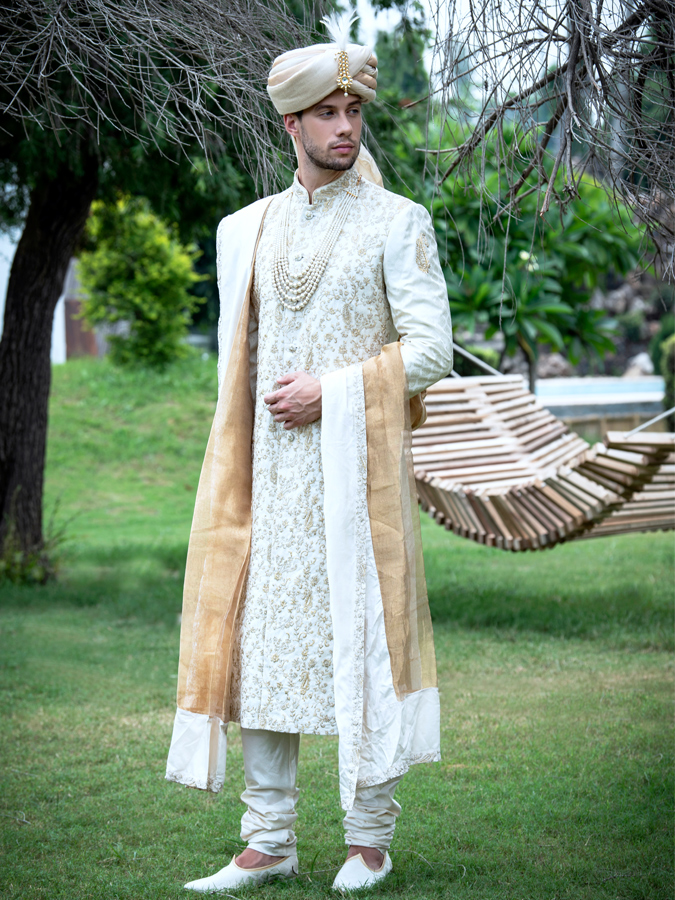 KCMN Sherwani- Look a class apart with our wide range of sherwanis. An exquisite quality of fabric and a large variety of colour combinations will leave you spoilt for choice. Put on our well-crafted and detailed sherwanis and feel the essence of royalty.