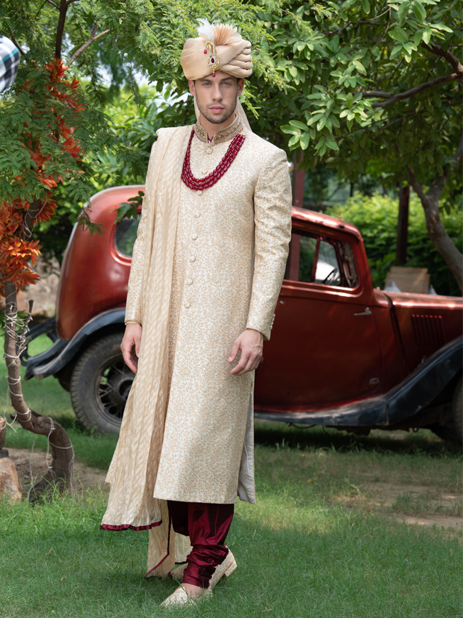 Traditional Indian sherwani collection online for wedding, sangeet and festive occasions. choose from latest designer shervani designs to buy sherwani online at KCMN.