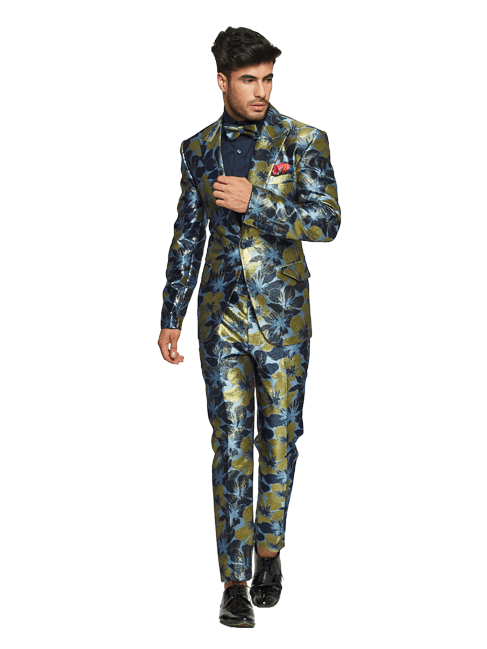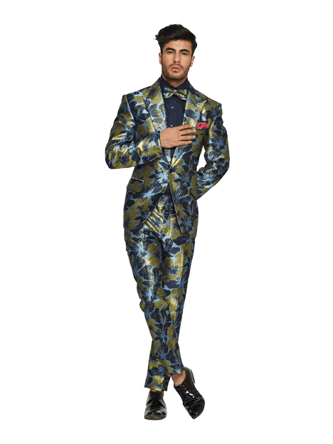 The most Common style of formal Wear in India Originated in Britain, Blue self jacquard suit are the Second most demanding style of men's Western wear.
