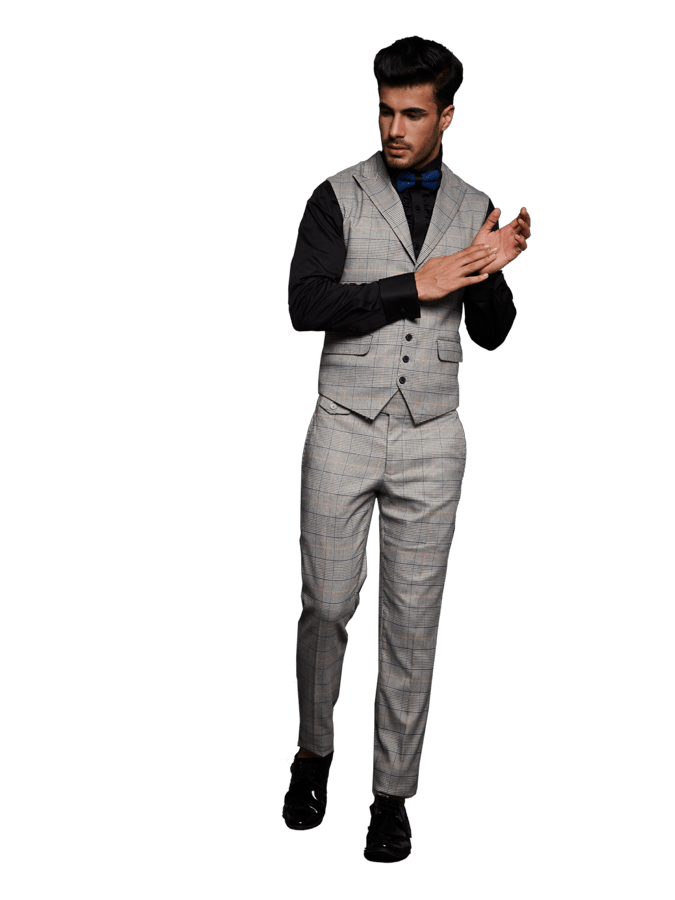 The most Common style of formal Wear in India Originated in Britain, Prince of wales grey check suit are the most demanding style of men's Western wear.